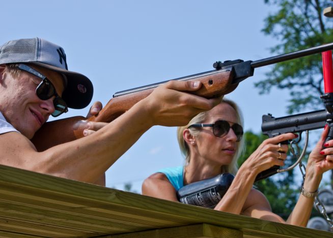 Biatlons tiek uzskatīts par vienu no populārākajiem un skatītākajiem ziemas sporta veidiem. Pie mums ir atrakcija lāzerbiatlons, kur ar lāzerstaru jāšauj pa speciali izveidotiem mērķiem, lai nodzēstu visas gaismas. Lāzerbiatlonā netiek izmantotas nekāda vieda lodes, tāpēc atrakcijā var piedalīties jau no 3 gadu vecuma.